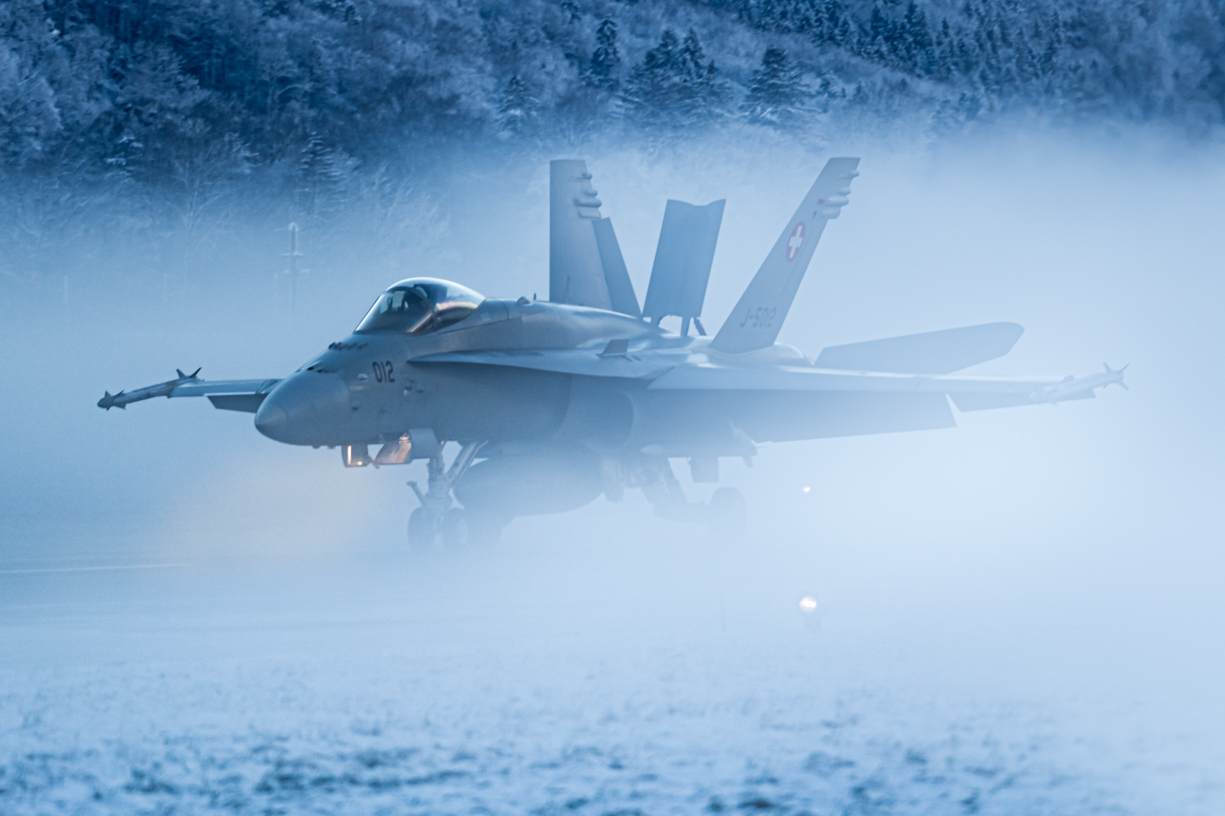 Tuesday 20th January: We will spend the day around the perimeter of the Payerne AB. The base is home of the Quick Reaction Alert / air policing activities of the Swiss AF Hornet fleet, which fly live-armed in all weathers and all lighting conditions for some truly dramatic images. After dark, we return for some traditional Swiss cuisine and social debrief.
