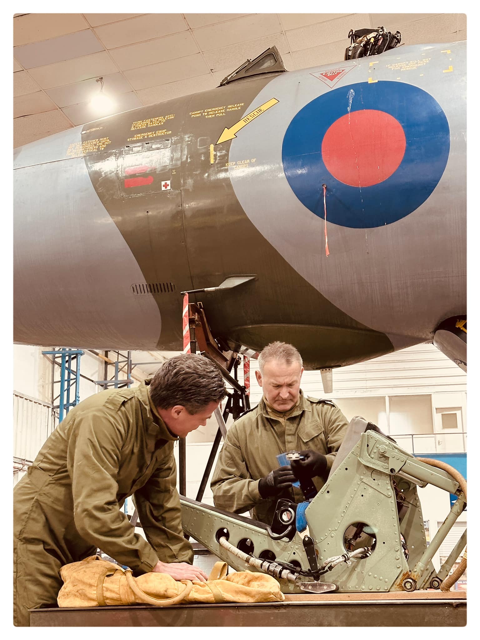 Subject to the XL426 maintenance programme schedule, we aim to recapture as many genuine engineering scenes as possible in the hangar. Working on the undercarriage, under the wings, on the wing, in the bomb bay, with brake disc assemblies, etc... You get the idea, just like you were there some 50... Yes, fifty years ago!